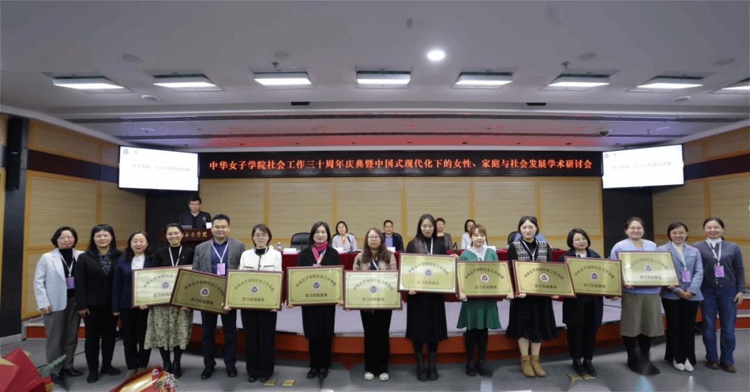 女性群体相关议题一直是女院社会工作学院教师研究的重心所在。为了整合学院社会工作和社会学两个专业的学术力量,推进女性群体研究的进一步深化,学院与北京市朝阳区来广营地区办事处达成共识,合作打造中华女子学院女性与社会治理研究基地。此外,注重专业价值观的熏陶和实务能力的提升是社会工作学院人才培养的突出特色。为了实现培养目标,学院一贯重视专业实习实践基地建设。值此社会工作30周年之际,开幕式上进行了中华女子学院女性与社会治理研究基地和社会工作学院实习实践基地的授牌仪式。