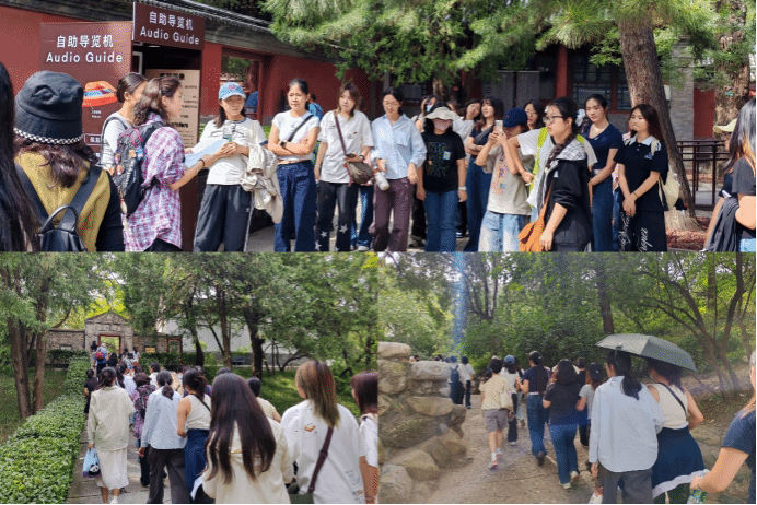 走出香山革命纪念馆,大家便沿着计划中的路线开始向香山爱国主义教育基地——双清别墅进发。同学们沿山路攀登而上,途中向上的坡度和骄阳的热情依旧让同学们汗流浃背,大家相互鼓励、相互扶持,一路上都充满欢声笑语。有的同学主动帮体力稍弱的伙伴背包,有的则分享自己登山的小技巧……温暖且充实。大家欣赏着香山的自然风光,感受着大自然的魅力,同时展现出坚韧不拔的毅力和积极向上的精神风貌。