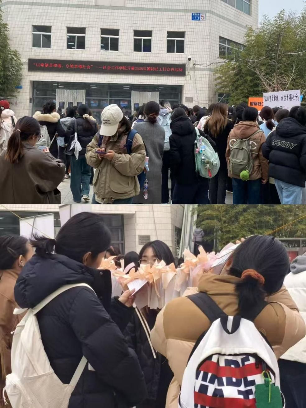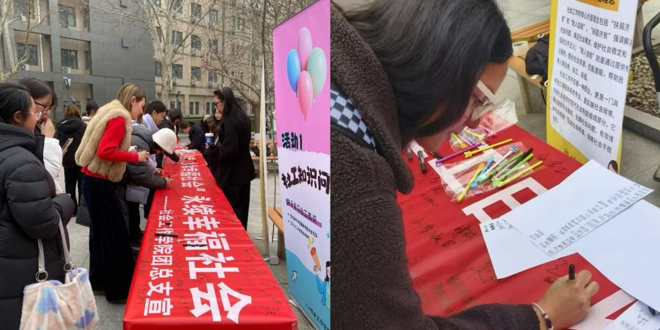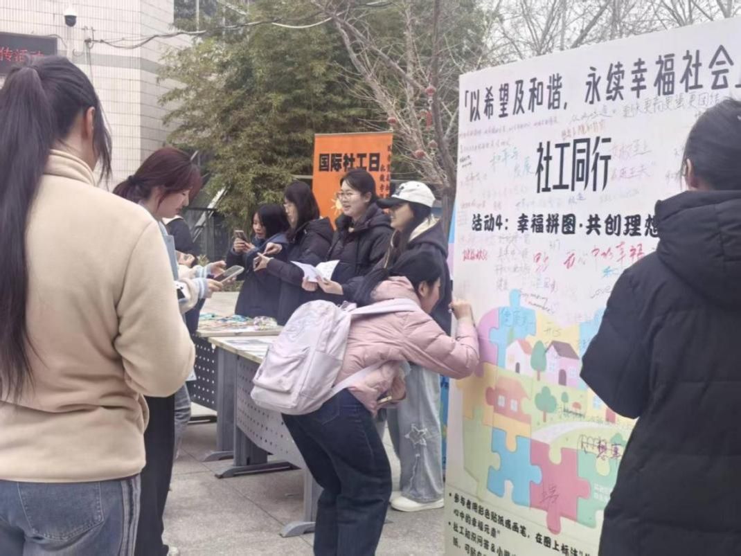 2026年3月17日是第20个国际社工日,主题为“以希望及和谐,永续幸福社会”,强调社会工作在凝聚社会力量、促进人际和谐、打造幸福永续社会中的关键作用,为新时代社会工作实践与发展锚定核心方向。为深化全校师生对社会工作专业的认知与理解,提升社会工作者的社会认可度,让社工“助人自助”的核心理念深入人心,进一步培育青年学生的社会责任感与公益奉献精神,3月17日至18日,社会工作学院围绕今年的国际社工日主题,精心策划并开展了系列宣传、实践活动,以趣味互动、专业体验、光影感悟等多元形式,让“希望与和谐”的理念落地校园,吸引了全校师生热情参与,现场氛围热烈温馨。