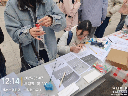 参与者执笔临摹女书“我不是鸟,我是风本身”“你我皆自由”等字符,在素雅书签上勾勒千年女性智慧。临摹女书的同时,女院学子也从中获得了强大的女性力量,激发了自信心。