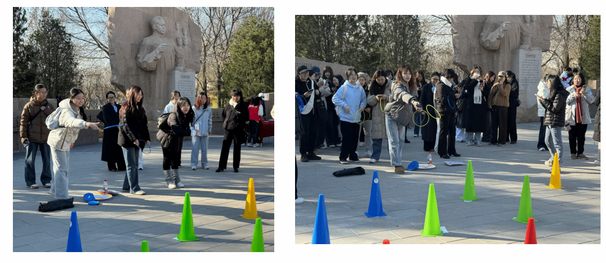 活动首站来到位于通州大运河森林公园内的“运河清风”廉政文化主题公园。学生党员们沿运河岸边漫步,在廉政雕塑前驻足体悟廉洁精神,于典故长廊中研读运河文化所蕴含的廉政故事,深刻领会其精神内核,在实景实感中涵养清风正气。为增强活动的趣味性与学生党员的参与感,党支部精心设计了“知识快问快答”等趣味答题环节。在套圈答题过程中,党员们踊跃抢答、配合默契,在轻松愉快的氛围中巩固了党的二十届四中全会精神和“十五五”规划相关内容。现场欢笑声与掌声不断,廉政文化的种子在潜移默化中深植学生党员们心田。