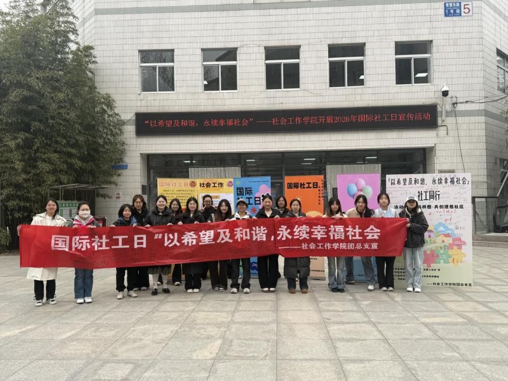 2026年3月17日是第20个国际社工日,主题为“以希望及和谐,永续幸福社会”,强调社会工作在凝聚社会力量、促进人际和谐、打造幸福永续社会中的关键作用,为新时代社会工作实践与发展锚定核心方向。为深化全校师生对社会工作专业的认知与理解,提升社会工作者的社会认可度,让社工“助人自助”的核心理念深入人心,进一步培育青年学生的社会责任感与公益奉献精神,3月17日至18日,社会工作学院围绕今年的国际社工日主题,精心策划并开展了系列宣传、实践活动,以趣味互动、专业体验、光影感悟等多元形式,让“希望与和谐”的理念落地校园,吸引了全校师生热情参与,现场氛围热烈温馨。