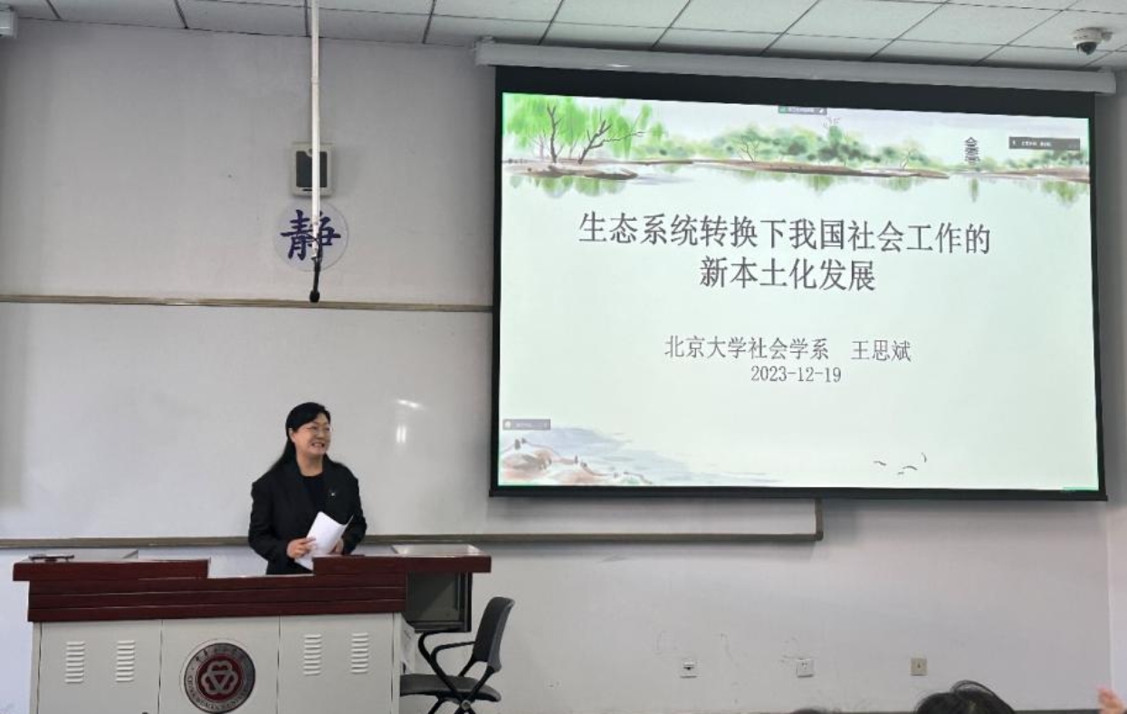 在本次讲座中,王思斌教授以“生态系统转换下我国社会工作的新本土化发展”为题,分享了他对中国式现代化新征程时代背景下,社会工作如何发展与转型这一问题的思考,阐释了社会工作实现“新本土化发展”的必要性、生态-社会学视角下的社会工作、我国社会工作事业发展的生态系统转换以及未来社会工作的发展方向。