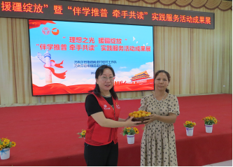 7月12日上午,暑期实践团组织了实践服务活动成果展示。乃则尔巴格镇副镇长阿尼古力·拜克热、乃镇前进村第一书记兼工作队队长比里克孜·依明、工作队副队长王东哲、金鑫以及儿童家长等莅临现场。比里克孜·依明书记对中华女子学院师生的辛苦付出表达了诚挚感谢,强调正是因为师生的努力,为当地儿童带来了积极改变。希望前进村儿童珍惜时光,好好学习,努力成为有理想、有本领、有担当的新时代人才,为家乡的发展贡献自己的力量。阿尼古力·拜克热副镇长在讲话中对中华女子学院师生的奉献表示感激,指出儿童是家乡的未来和希望,要以女院师生为榜样,勤奋学习,不断进步。李敏院长新疆维吾尔自治区妇联工作队的大力支持表示感谢,并表达了后续将发挥学校学院的学科优势和资源优势,进一步加强与自治区妇联的合作,为新疆妇女儿童发展贡献力量的愿望。令人感动的是,儿童家长为了表达对老师们的感谢,特意采摘了自家种植的杏子作为礼物送给实践团。