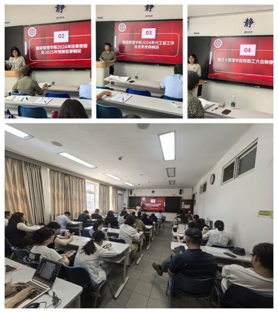 学院办公室主任邵玉杰汇报了2024年管理学院经费使用情况及2025年预算批复内容,经费使用科学合理。