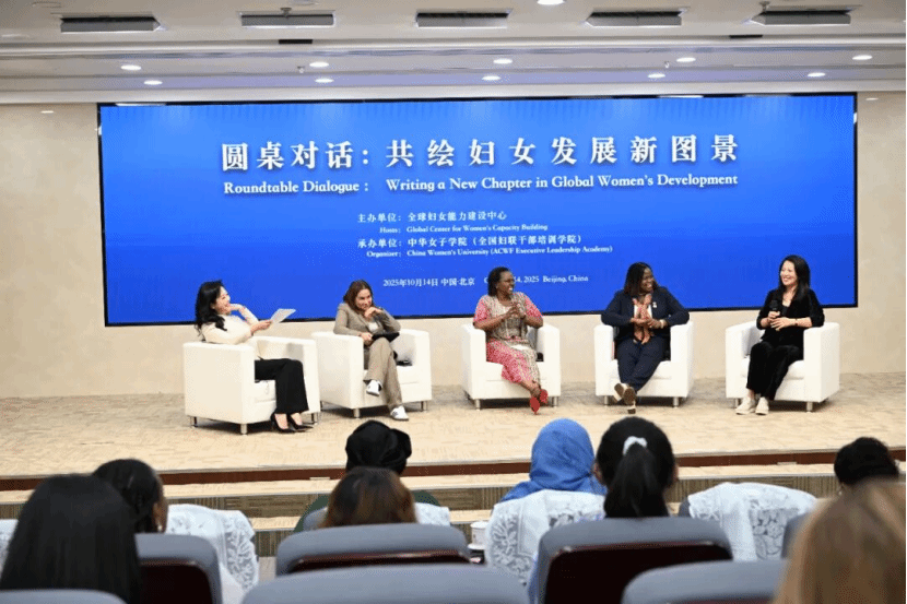 揭牌仪式后举办了以“共绘妇女发展新图景”为主题的圆桌对话,多国代表回应全球妇女峰会“命运与共:加速妇女全面发展新进程”的主题和精神,探讨推动全球妇女发展的思路和做法。