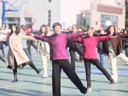 11月5日,全校教职工齐聚操场,以分工会为单位进行广播操展演。党委书记刘亚玫、院长刘利群带领班子成员参加展演。随着熟悉而又轻快的广播操音乐响起,大家精神抖擞,气宇轩昂,从第一节伸展运动到最后一节整理运动,伸手抬腿的每一动作都刚劲有力,把广播操的简单规范、明快流畅、横平竖直的特点展露无遗,让整个操场上充满了朝气和活力,展示了我校教职工拼搏进取、团结一致的向上精神。大家纷纷表示,要以此为契机,树立积极向上的心态,健康生活、快乐工作,以强健的体魄、昂扬的精神为高质量建设中国特色女子大学和妇联干部培训学院作出新的贡献。
