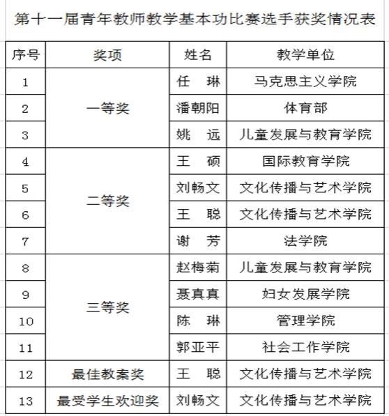 经综合评审,比赛评选出一等奖3名、二等奖4名、三等奖4名、最佳教案1名和最受学生欢迎奖1名。
