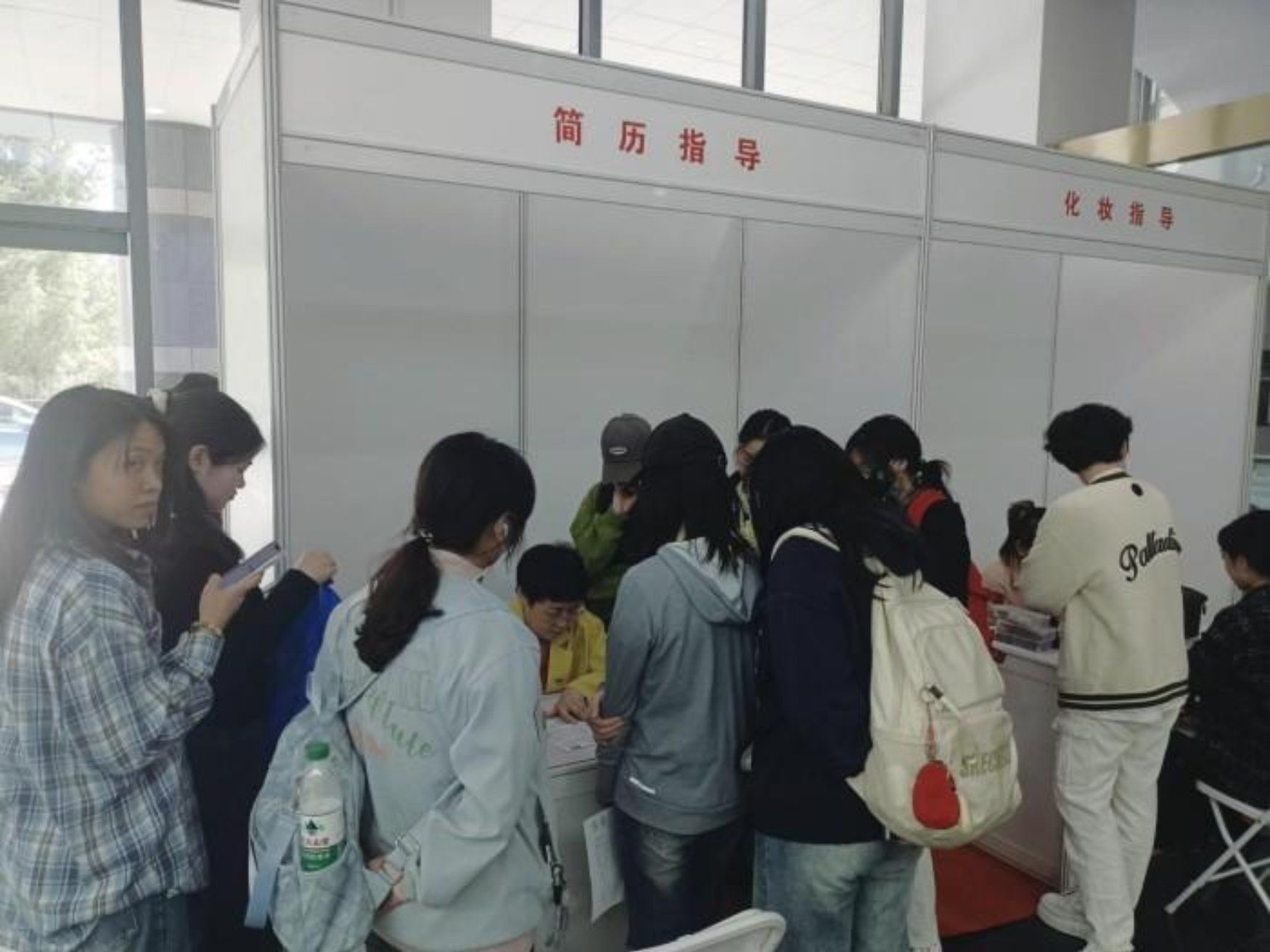 为提升求职实效性,双选会延续“精准服务”理念。简历优化区配备专业指导,根据不同岗位特性,为毕业生定制个性化简历模板。职业形象指导区设“轻职场妆造”体验,助力学生展现青春活力的同时,尽显专业风范。