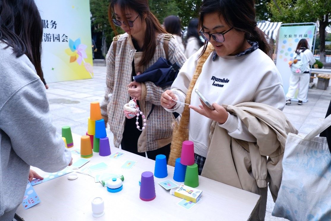 2025年10月10日是第34个世界精神卫生日,中华女子学院举办以“人人享有心理健康服务”为主题的游园会活动。本次活动旨在响应国家“人人享有心理健康服务”的宣传主题,落实核心要求,让心理健康理念走出咨询室、走进日常生活,构建积极心理育人的校园环境,让更多同学在轻松有趣的氛围中体验心理成长的力量。本次游园会吸引了近500多名师生积极参与,共同体验了心理健康服务的多元化与可及性。学校领导高度重视,来到活动现场和同学们一起参与、体验。