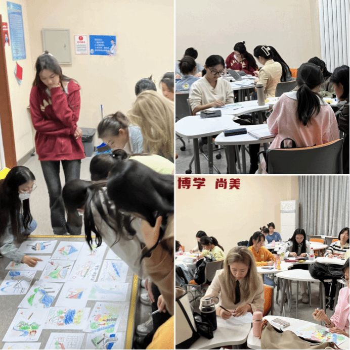 讲座伊始,苏老师选取十个经典元素引导同学们进行画作创作和投票分享,并结合画作的风格、类型、色彩等要素用心理学知识深入剖析同学们的性格特征和内心世界,探究同学们当下的心理状态,激发同学们积极投入到活动之中。