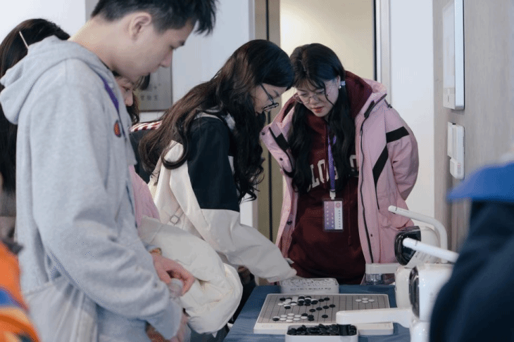 (学生在展馆内互动交流)