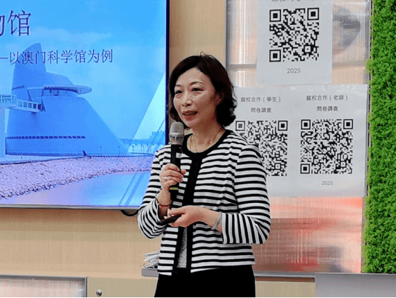 (澳门科学馆董事长穆欣欣向书院师生介绍科学馆)