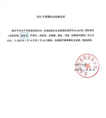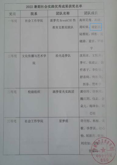 1. 获得“青年服务国家”2022年中华女子学院学生暑期社会实践【优秀团队】和【优秀成果】一等奖