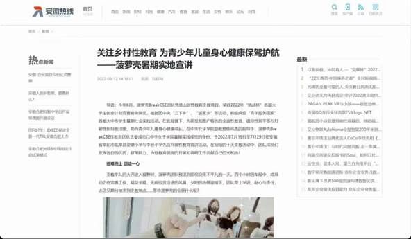 2. 受到三家省级媒体报道:中国安徽网、安徽网、安徽热线