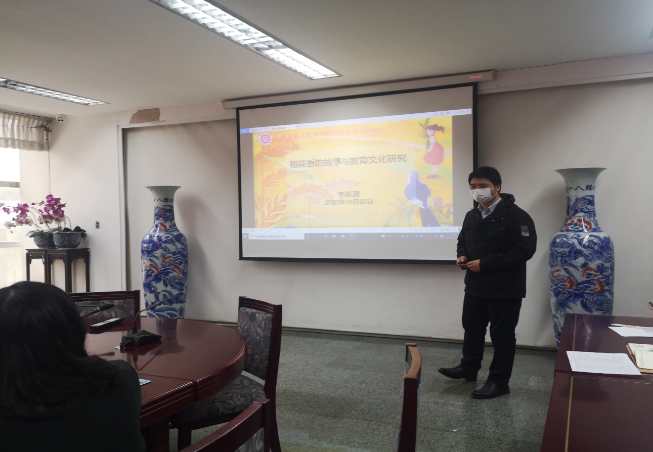 李英源博士从自身的田野工作经历开始,讲述了“稻花香”的故事,结合相关研究和新闻报道,探讨了教什么与怎么教,教育的真谛,科学与日常生活等问题。接着分享了自己的学术经历,结合自己的研究论文及一些项目的研究经历,就“教育文化研究”专题做了生动有趣的分享,探讨了文化、心理、叙事、科学、教育等内容。最后分享了个人成长中的收获与困惑。分享结束后多位老师给予了李英源老师积极的回应与温暖的鼓励。