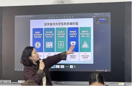 活动开始,丁鼎老师系统阐述奖助学金的核心意义,针对本科、研究生奖助学金评定,详细解读参评机制,明确成绩要求;针对综合测评加分,依据德智体美劳五维度,讲解学科竞赛、社会实践、校园活动等加分依据与学院审核规范。现场互动环节,学生踊跃提问,丁鼎老师逐一耐心解答,切实解决学生在奖助评优申报、材料准备、分数核算中的实际困惑。