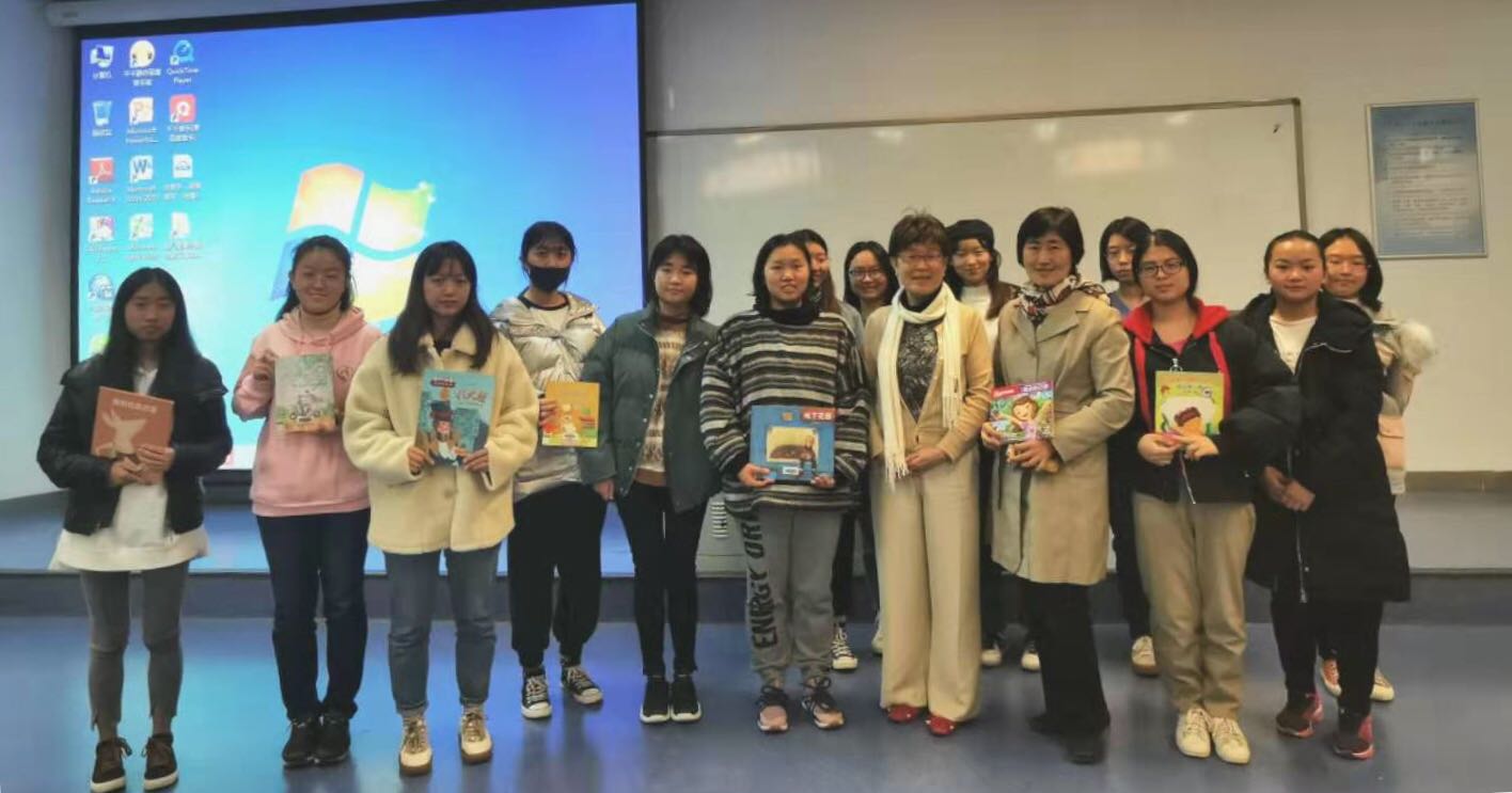 “提问技巧”工作坊和“脑、学习与阅读的奥秘、图像阅读”工作坊由儿童发展与教育学院特聘教授-来自台湾政治大学的学者简楚瑛教授主讲。跟随简教授的脚步,同学们不仅学习到了向儿童提问的技巧,还知晓了绘本艺术的丰富内涵,领会到绘本是丰富儿童心灵世界的重要工具,本次活动拓展了学生的学科视野、提高和学生的教育教学能力、实践操作技能。讲座结束后,同学们手持绘本开心地与简教授合影。