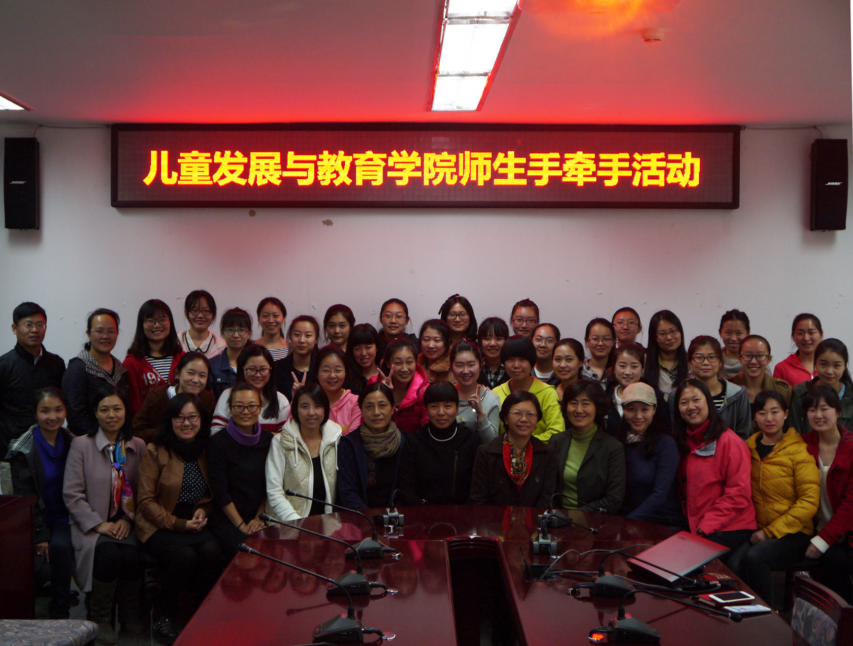 为进一步加强基层党组织与群众的联系,更好地帮助和促进学生的成长成才,儿童发展与教育学院教工党支部积极落实学校党委关于师生手牵手活动的相关要求,与2013级学前教育4班开展师生手牵手活动,在前期精心策划的基础上,11月3日中午,儿童发展与教育学院教工党支部与2013级学前教育4班在学校第七会议室举办了师生座谈交流会。