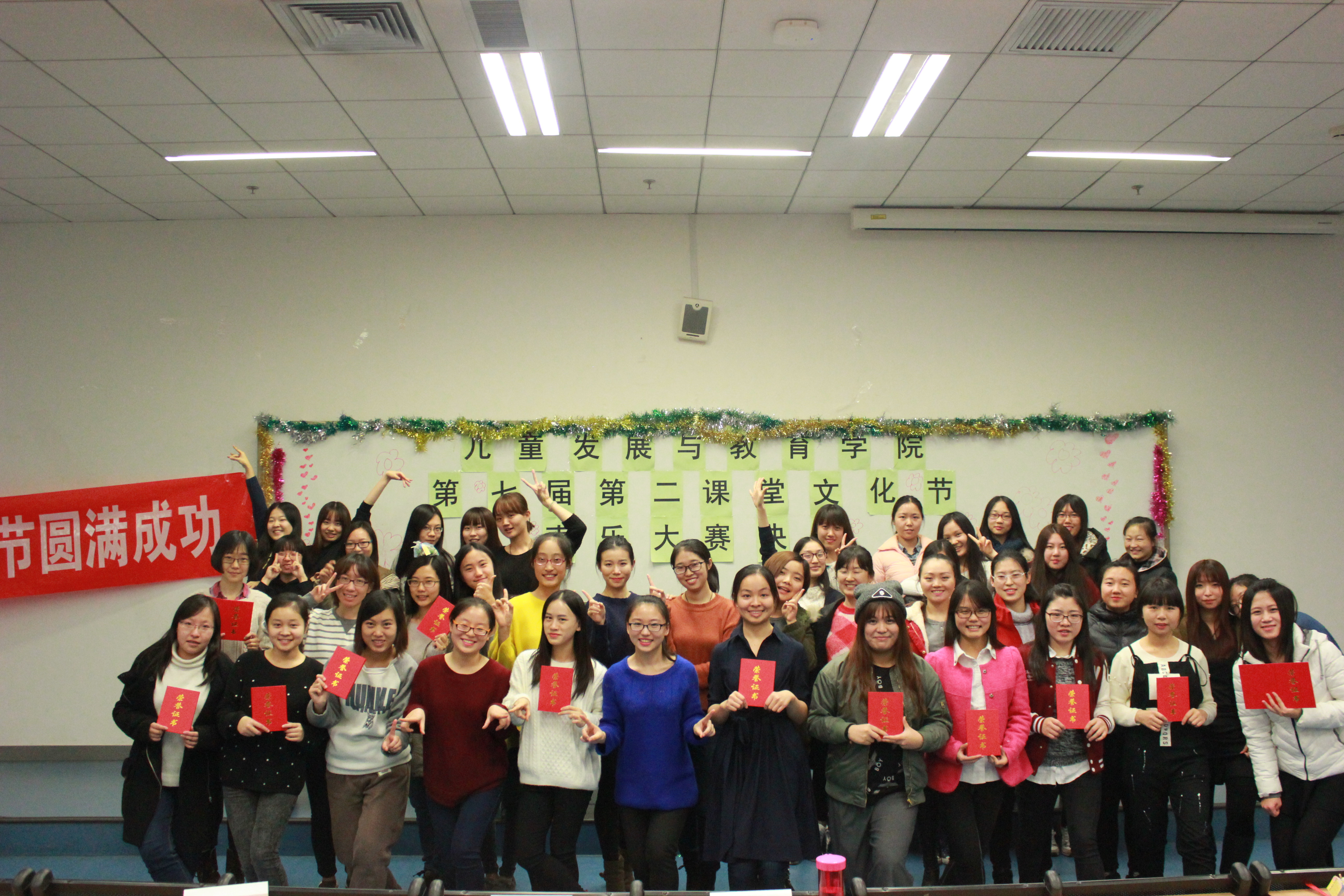 儿童发展与教育学院第七届第二课堂文化节系列活动的成功举办,不但丰富了同学们的课余生活,增进了彼此之间的友情,也提高了儿童发展与教育学院团、学联各部门之间的交流与配合,锻炼了学生的能力,为同学们的大学生活描上了靓丽的一笔。本次第二课堂文化节中的精彩节目将在儿童发展与教育学院迎新年晚会上呈现给全校师生,敬请期待!