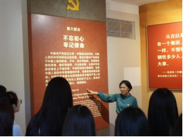 最后,郑雷书记结合参观内容讲解现场党课。郑雷老师向学生党员讲述中国共产党的奋进历程,她希望青年一代党员同志可以不忘初心、牢记使命,永远保持奋斗精神以及为人民服务的赤子之心,在未来的人生道路上,以行动践行初心使命,用奉献诠释责任担当,争做新时代合格建设者和可靠接班人。