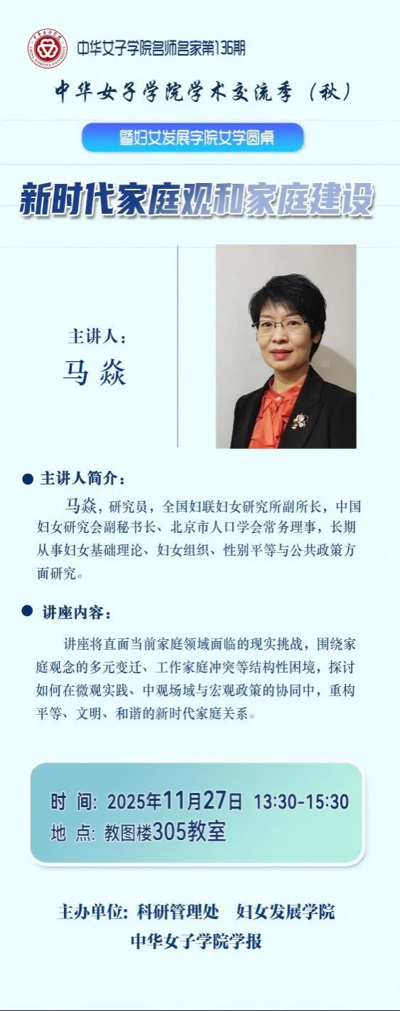 讲座预告“女学圆桌:新时代家庭观和家庭建设”