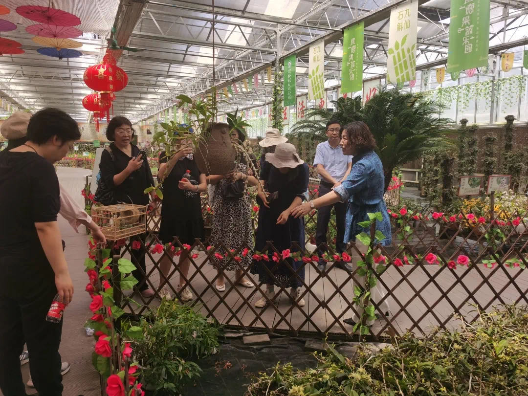 在莲花镇齐平村,调研全国巾帼农业科技示范基地。基地负责人许建茹曾经是当地畜禽养殖致富带头人之一,为了莲花溪重现清澈,踏上了退养转型发展路,如今已是全国知名的铁皮石斛的“仙草土专家”。为带动群众致富,她牵头成立“建德市莲花镇康久中药材专业合作社”,采用“合作社+基地+农户”模式,让农户以土地或者资金入股,合作社提供技术指导、帮助销售,吸引了周边50余户农户入社,共同建立300余亩铁皮石斛生态种植基地。