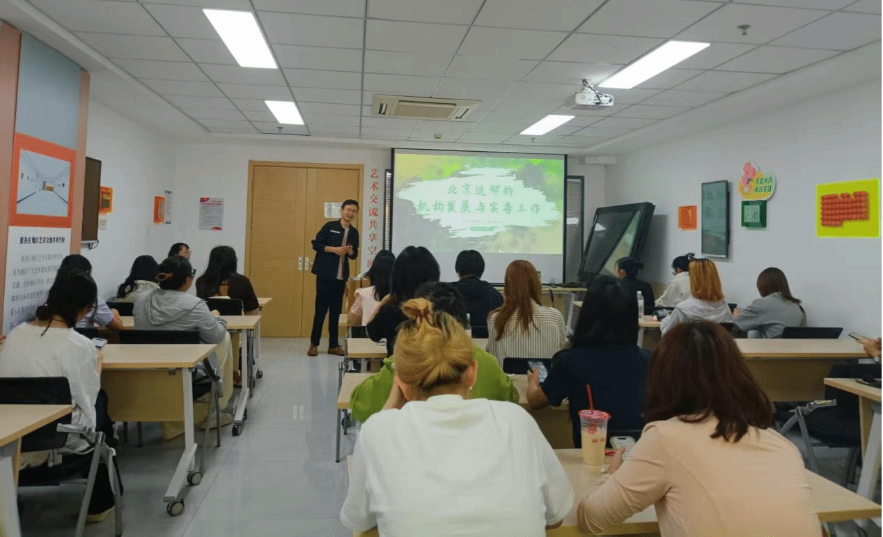 在北京近邻社会工作服务中心,魏儆麟老师详细介绍了机构在农转居社区治理和三亲教育方面的创新实践成果。中心通过开展丰富多彩的传统文化活动、亲子教育课程等,有效促进了居民的文化适应和代际沟通。同学们对“三亲教育”(亲情、亲社区、亲自然)理念在社区教育中的应用表现出了浓厚的兴趣,并就如何在城市化进程中更好地保留传统文化展开了热烈讨论,深刻感受到了传统文化在现代社区建设中的独特魅力与重要价值。