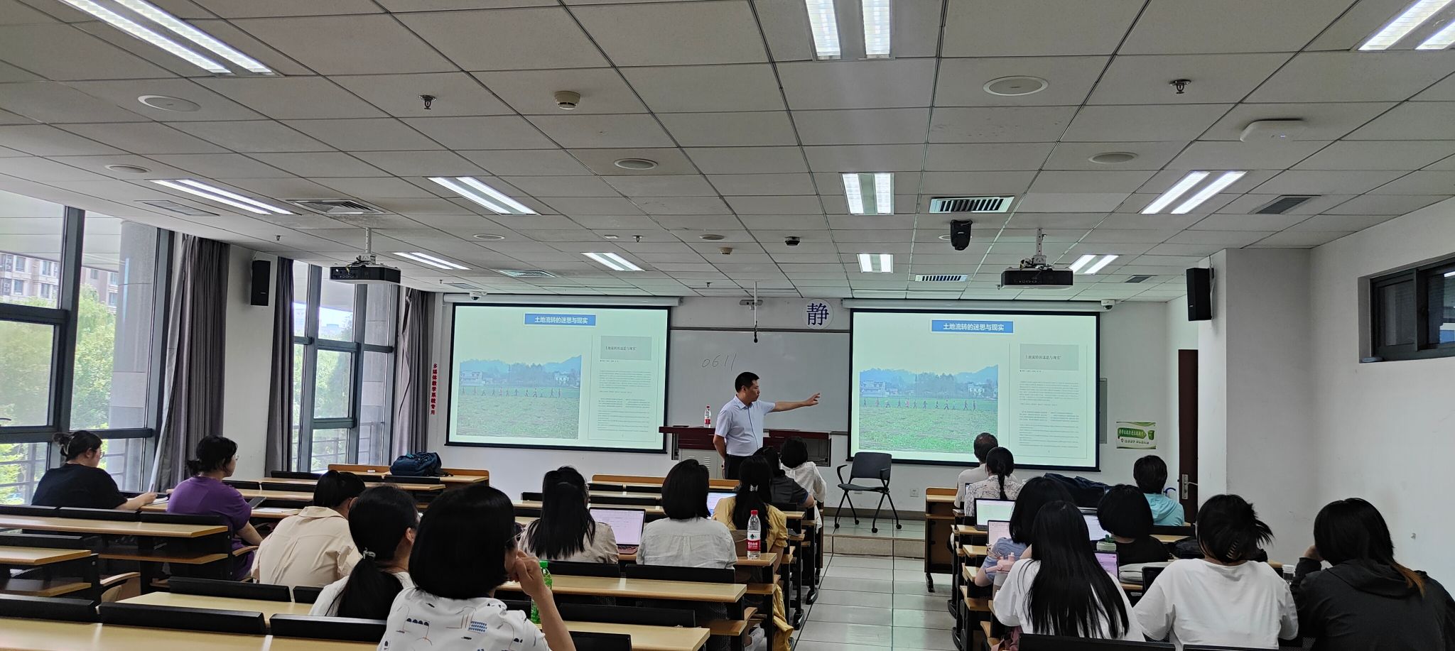叶教授提炼出“学术没有攻略,只有规律”“研究没有捷径,只有坚守”“调研既是育己,也是育人”等多年在田野乡村进行调查的经验,向大家讲解了研究过程的八个步骤,重点强调“坚守”的意义,不但要坚持对话题的持续关注,也要持之以恒地进行阅读和理论学习。最后,参加讲座的师生就如何进行调研团队打造、如何进行资政报告撰写、什么是农民视角、融合发展中的农村妇女等议题与叶教授进行了热烈的讨论。