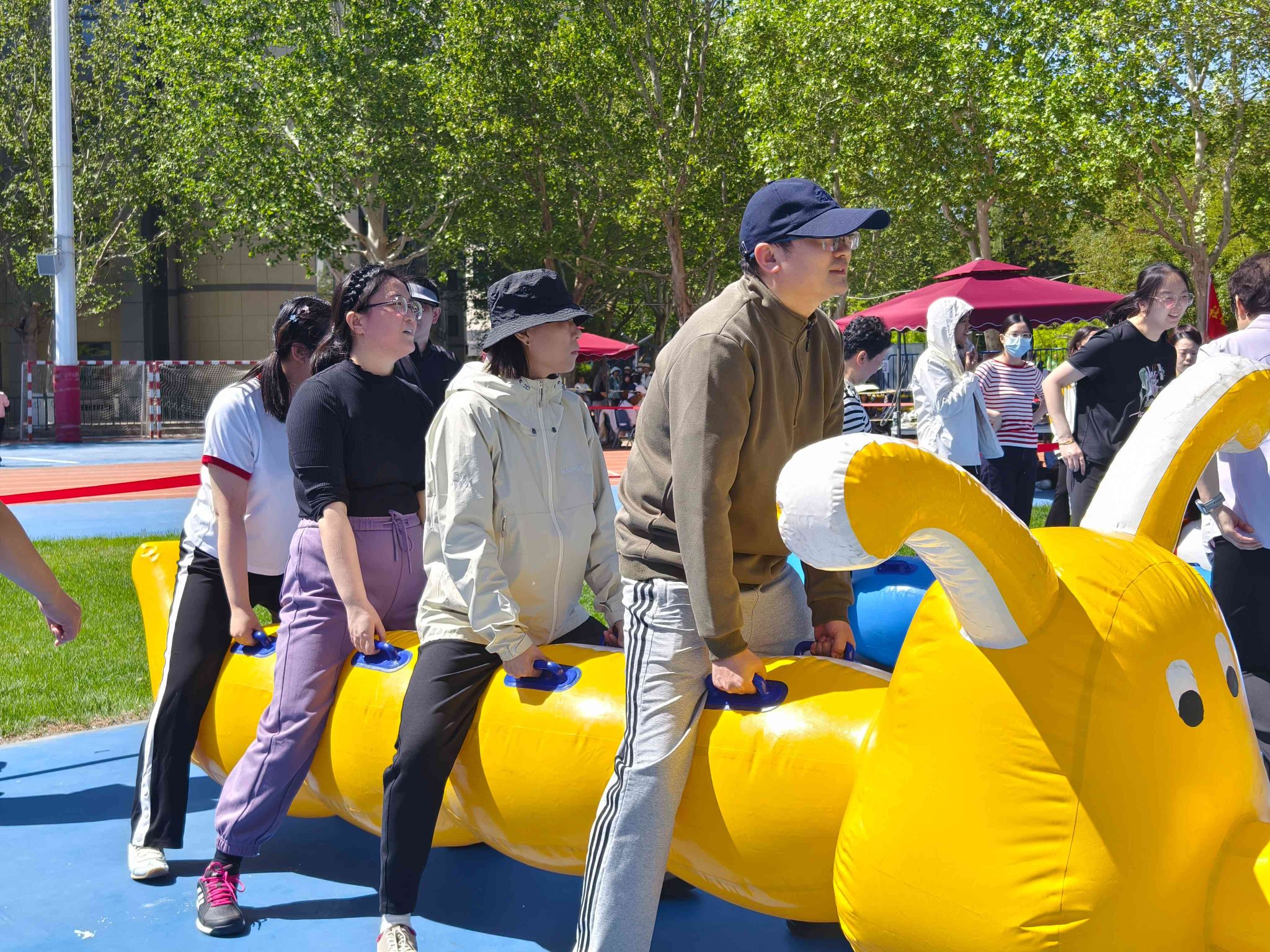 集体项目里,妇女发展学院分工会的教职工们默契配合、协同作战。他们凭借精湛的技艺和紧密的协作,在混合毛毛虫竞速、混合托球跑项目中均荣获第二名。每一次的交接、每一次的呐喊,都凝聚着团队成员的心血与汗水,彰显了强大的团队凝聚力。