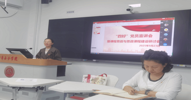 2025年9月23日下午,法学院、马克思主义学院、妇女发展学院、干部培训部教师在主楼136智慧教室成功举办了“四好”党员宣讲暨思政课程与课程思政建设研讨会。