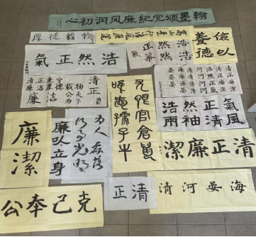 随后,党员们纷纷拿起毛笔,用不同书体书写廉政格言。大家全神贯注地投入临摹,笔尖在宣纸上舞动,篆书的质朴、隶书的庄重、楷书的规范、行书的灵动、草书的奔逸跃然纸上。党员们在笔墨间感悟廉洁理念,体会党规党纪的严肃性,深刻领悟廉洁自律的重要性,进一步坚定了廉洁奉公的信念。