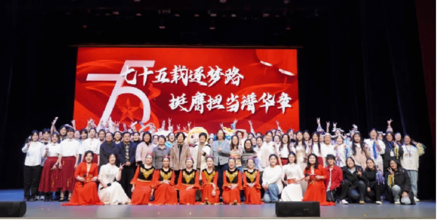 中华女子学院管理学院为庆祝建校75周年,于2024年11月29日晚在学校礼堂举办“七十五载筑梦路,挺膺担当谱华章”为主题的文艺汇演。中华女子学院党委副书记兼纪委书记邢慧丽、学生工作部部长马瑜、校团委书记盛莉、社会工作学院党总支书记巫晓莲、学生工作部副部长王静、管理学院党总支书记赵文淼,以及来自学校和学院的其他教师代表,作为领导与嘉宾出席晚会,与管院学子们欢聚一堂,共同回望过去辉煌历程,展望未来崭新篇章!