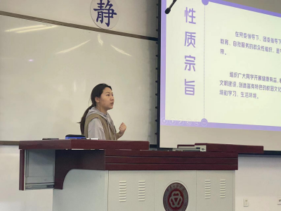 赵凤利介绍了管理学院基本情况及学生科工作程序,王懿对教务科的人员构成及教务工作流程做了简要说明,管理学院学生会主席张靖、团总支副书记陈诗棋两名同学分别就学院两大学生组织的运转等向同学们进行了较全面的展示。