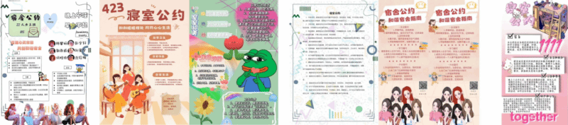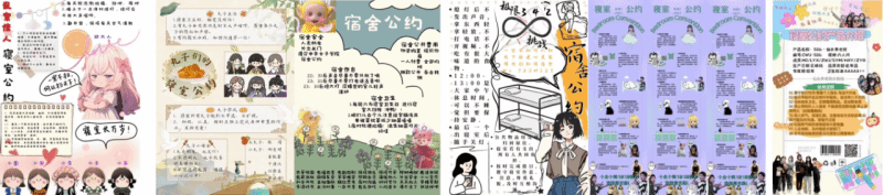 寝室作为我们大学生活学习的主要空间,体现着一个家的概念,它承载并体现着其内部成员的人文精神、生活态度及综合素质。为营造和谐的寝室文化气氛,发挥寝室成员特长,丰富大学生活,弘扬个性创新,展示我校大学生风采,促进寝室同学之间的沟通交流,管理学院于10月份举行第一届寝室公约设计大赛。大赛设“内容赛道”和“创意赛道”,经过全院师生投票,最终产生两个赛道共产生12个获奖宿舍,下面请一起看看她们的寝室公约。