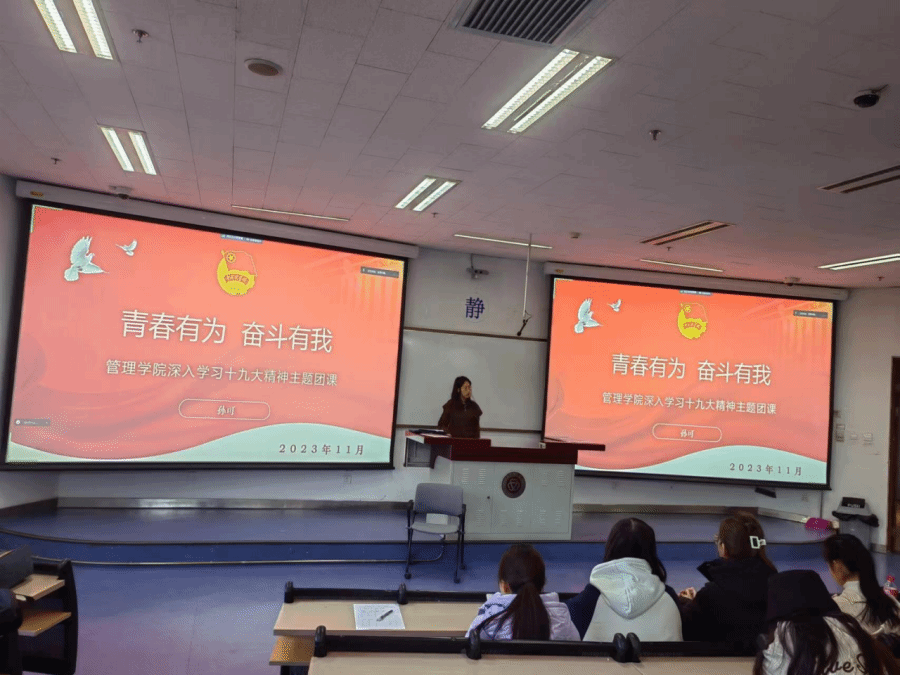 为充分发挥共青团组织培养青年责任意识的功能,为加强共青团组织的思想引领工作,让团员青年在学习习近平新时代中国特色社会主义思想的同时,凝聚起建设中国式现代化的蓬勃力量,2023年11月7日,管理学院团总支组织全体团员在教图楼213教室开展“青春有为,奋斗有我”主题教育团课。