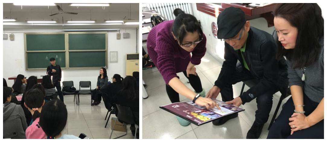讲座由艺术学院院长王露主持。王露老师对鲁闽教授的来访表示热情地欢迎,并在讲座期间,与同学们一起积极参与了与鲁闽教授的互动。