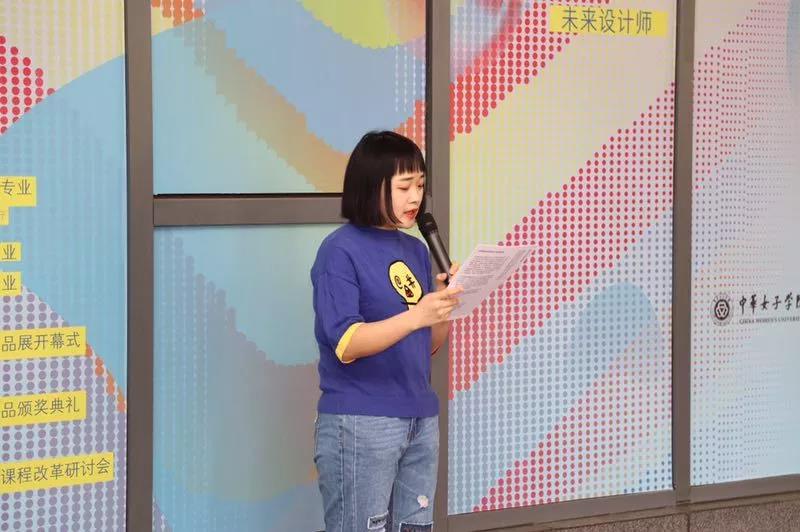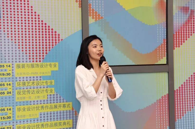 之后视觉传达设计专业的姜格和环境设计专业的颜家炫作为学生代表发言,她们回顾了四年令人难忘的学习生活并感谢老师们的谆谆教诲。