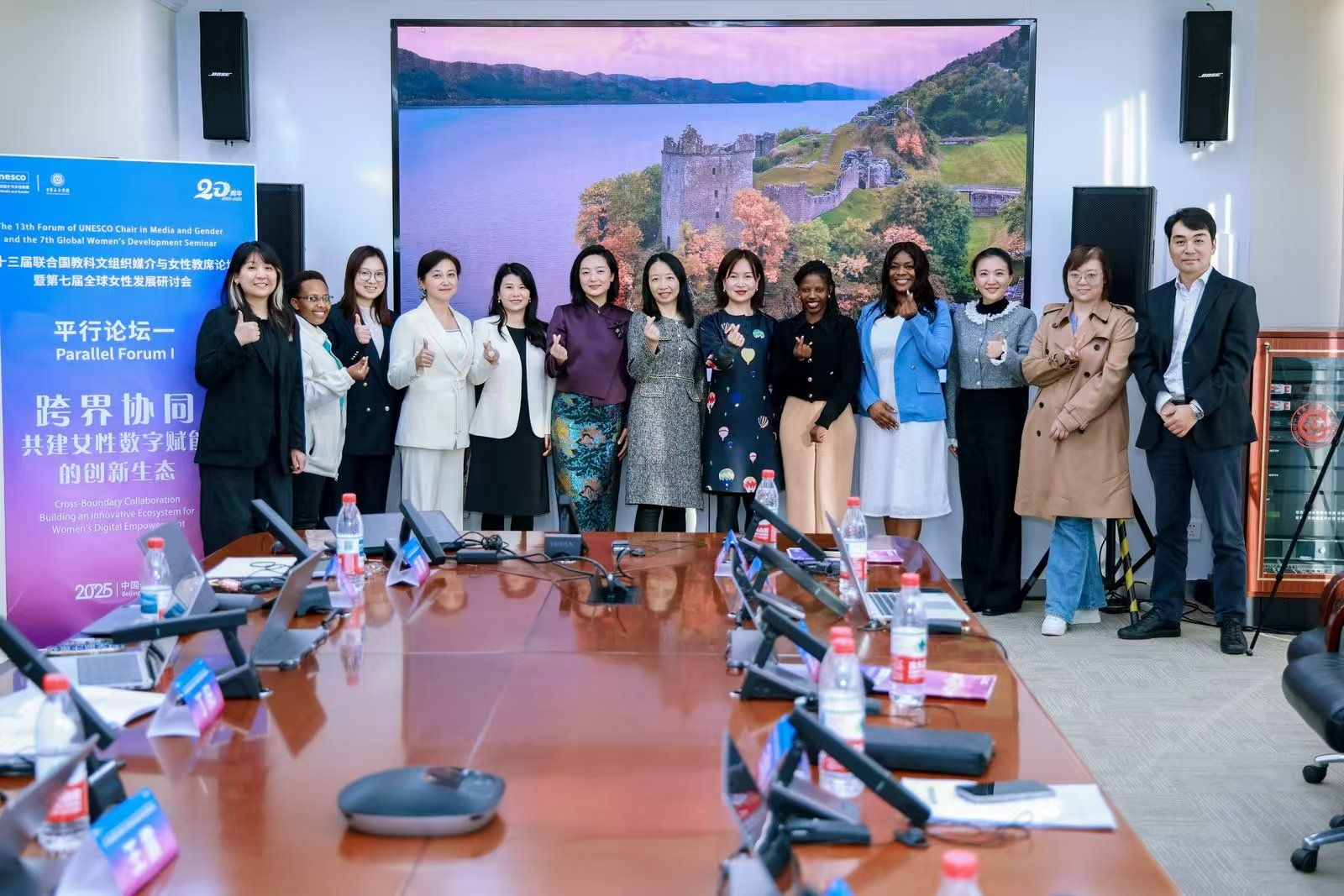 2025年10月19日下午,第十三届联合国教科文组织媒介与女性教席论坛暨第七届全球女性发展研讨会在中华女子学院举行平行论坛一和平行论坛二,来自国内外的专家学者围绕数字赋能妇女发展的议题展开精彩发言。