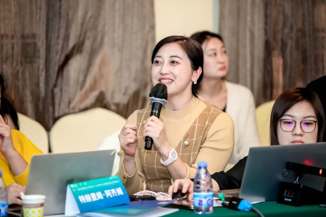 北京服装学院教师迪拉娜以“传统手工艺传承与创新中女性的力量”为主题进行了分享。她结合自己的经历从创新、传播、共享的角度讲述了传统手工艺传承与创新中的女性力量。她分享了自己从金融领域跨界到服装领域的经历,讲述了如何从美学、艺术学和社会学的视角观察当代女性的发展问题,并贯穿现实生活中的案例以及调研过程中的所见所感,解明了新时代赋予当代女性得到全面发展和解放的机遇。她相信只有国家、政府、企业、民间组织等多方齐心协力,共同推动女性的经济权利、劳动权利保护、教育知识平等和健康权益,才能实现社会稳定、乡村振兴、科学技术创新等一系列目标,创造一个更和平包容的世界。