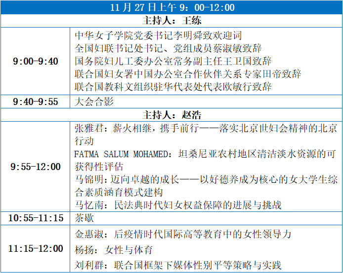 2020年,恰逢联合国第四次世界妇女大会召开25周年,为弘扬北京世妇会精神,回顾25来推动中国和世界妇女事业发展的伟大成就,进一步探索将性别平等落在实处的有效路径,让更多的妇女能够走在时代前列,中华女子学院将于2020年11月27日在北京举办第二届全球女性发展论坛暨纪念北京世妇会25周年学术研讨会。以下为会议日程: