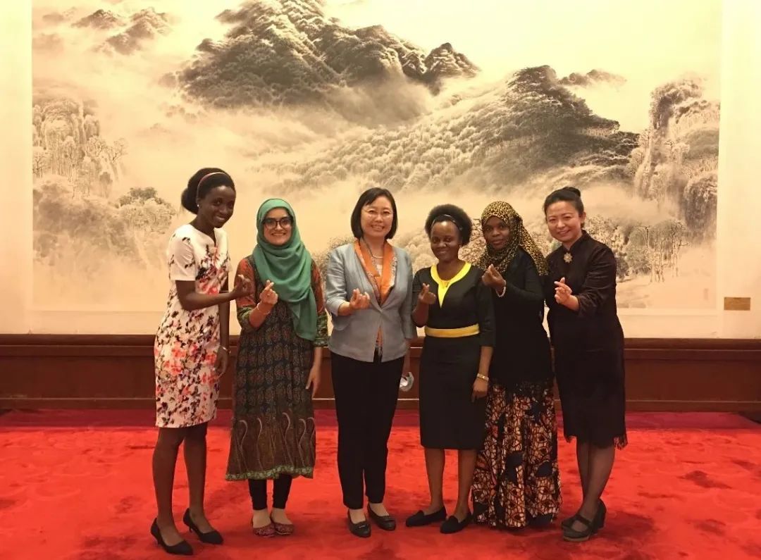 刘利群院长(左三)和留学生参加纪念北京世妇会25周年暨全球妇女峰会5周年座谈会