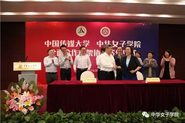 2019年5月10日,中国传媒大学与中华女子学院全面合作框架协议签约仪式在学校国际会议交流中心举行。中国传媒大学党委书记陈文申、校长廖祥忠、副校长张树庭、党政办公室主任杨懿、国内合作与交流处处长金勇;中华女子学院党委书记李明舜、院长刘利群,副院长王练、孙建北,党委副书记、纪委书记任翠茹与全体中层干部和师生代表参加签约仪式。签约仪式由王练主持。