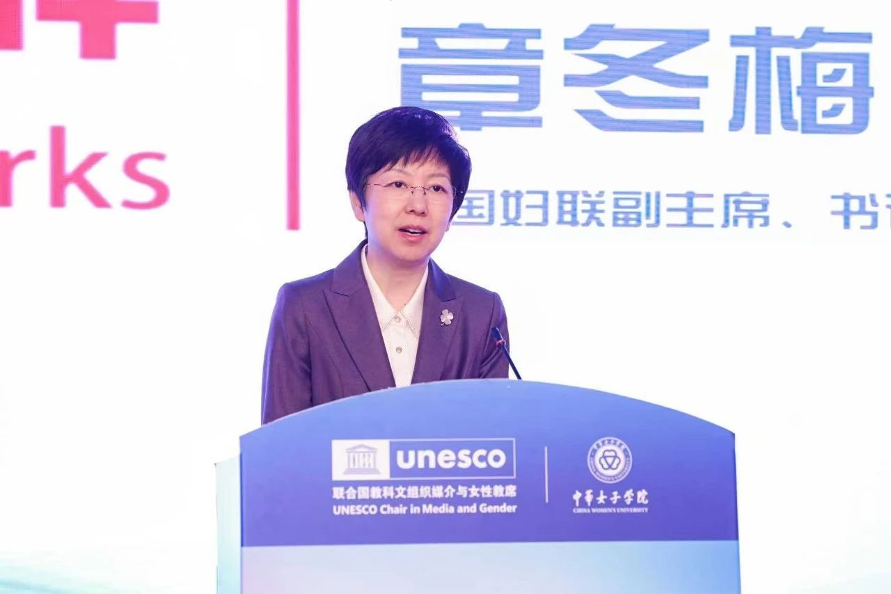 中华女子学院(全国妇联干部培训学院)副院长薛小丽在致辞中对各位嘉宾的出席以及社会各界对中华女子学院的支持关心表示感谢。她指出中华女子学院是联合国教科文组织媒介与女性联合教席的重要执行单位,一直致力于妇女和信息传播领域的研究与发展。今年是中华女子学院建校75周年,作为全国妇联直属院校,未来将继续发挥教席和全球妇女发展合作交流培训基地的重要作用,高质量建设中国特色女子大学,为促进妇女成长成才、全面发展作出更大贡献。