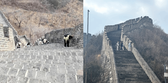 这次主题党日活动还与功能性运动装设计课程结合进行,教工党员们与同学们一起完成了户外徒步体验,在亲近自然的同时激发对设计需求的探索。从山脚到烽火台,大家凭着坚强的意志和饱满的热情,一步一个台阶,步步登高。大家在攀登中深入领会长城精神的内涵和民族文化,在相互鼓励中共同抵达终点。