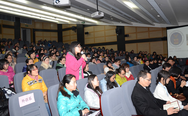 随后学生们也踊跃发言,积极提问,就自己关注的女大学自主创业、女性社会性别优势和劣势、美国劳工部的就业培训项目及国际合作项目、女大学生个人职业发展规划等等,与两位美国客人进行了深入交流和讨论。学生们现场的发言和表现,展示了我校学生的优秀素质,给来访的客人们留下了深刻印象。