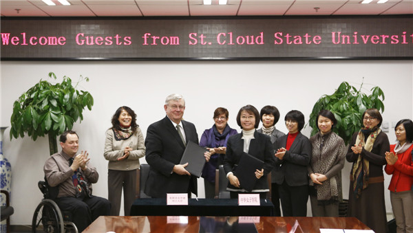 2014年12月12日,我院院长刘利群与来访的美国圣克劳德州立大学校长厄尔波特博士举行会谈,并共同签署了两校学生交流合作协议。