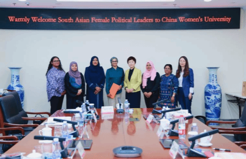 7月10日下午,由马尔代夫、斯里兰卡、尼泊尔和巴基斯坦女政治家组成的访学团一行20人访问中华女子学院,学校党委书记刘亚玫热情接待访问团一行,并就女性人才培养开展交流。