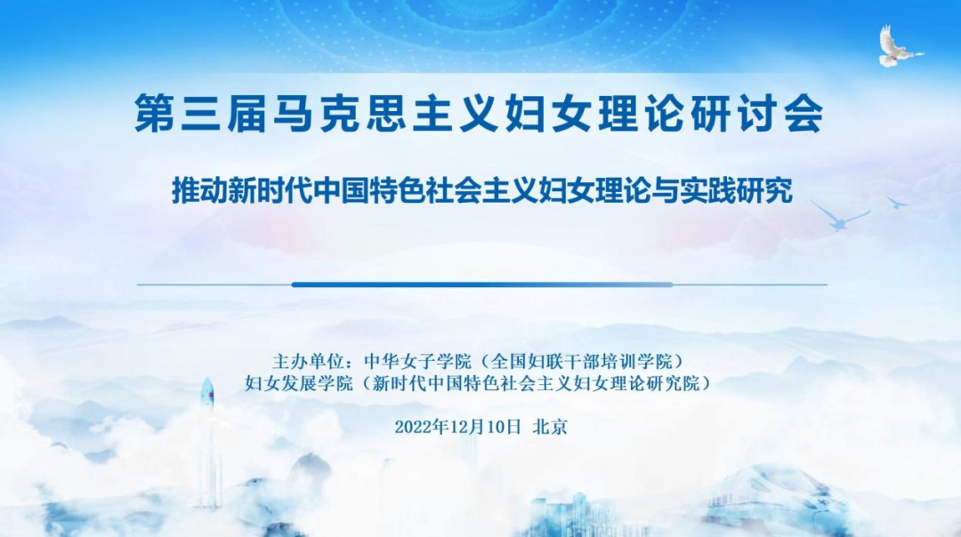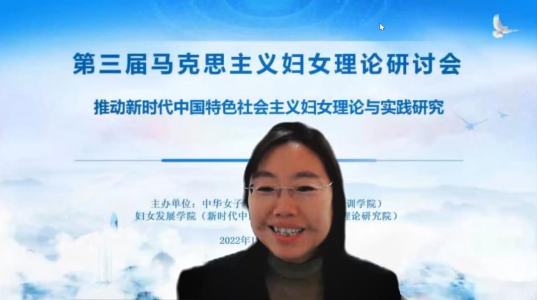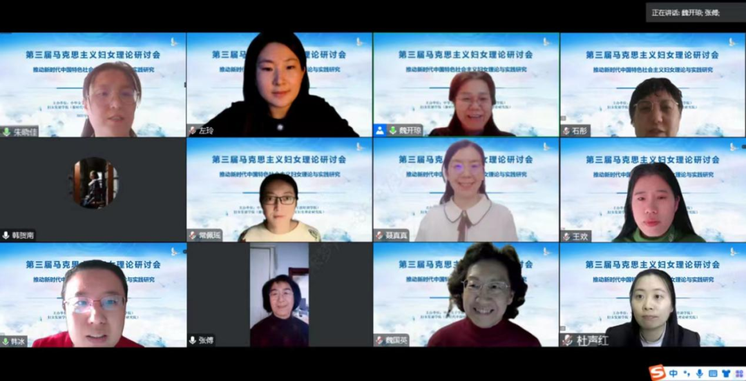 中国共产党自成立以来,始终坚持以马克思主义妇女理论为指导,结合中国实际,开辟中国特色社会主义妇女发展道路,丰富和发展马克思主义妇女理论。党的二十大报告中指出,要开辟马克思主义中国化时代化新境界,谱写马克思主义中国化时代化新篇章。为深入学习贯彻党的二十大精神,深刻领悟在推进中国式现代化进程中统筹推进妇女事业发展的战略意义,更好地推动新时代中国特色社会主义妇女理论研究,中华女子学院(全国妇联干部培训学院)新时代中国特色社会主义妇女理论研究院2022年12月10日通过腾讯会议平台顺利举办了的“第三届马克思主义妇女理论研讨会”线上会。来自中国社会科学院、全国妇联妇女研究所、清华大学、北京大学、中国人民大学、厦门大学、中南大学、中南民族大学、贵州师范大学、贵州财经大学等90余人相聚云端,18位专家学者围绕“推动新时代中国特色社会主义妇女理论与实践研究”主题进行探讨。