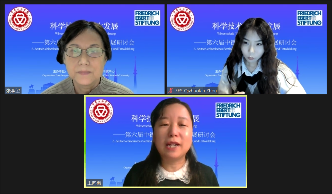 我国高度重视科技领域发展。党的二十大报告中强调,教育、科技、人才是全面建设社会主义现代化国家的基础性、战略性支撑;科技是第一生产力;完善科技创新体系;扩大国际科技交流合作。党和政府也高度重视妇女在科技领域的发展。在这个数字化时代,随着科学技术的不断发展和妇女地位的提高,广大女性也用智慧与行动在科技领域谱写出华丽的篇章。为进一步推动落实男女平等基本国策,深化科学技术相关领域的妇女与性别研究,2022年12月9-10日,中华女子学院中国妇女发展研究中心与德国弗里德里希·艾伯特基金会北京办公室,联合举办“科学技术与妇女发展——第六届中德性别平等与发展研讨会”,来自中国和德国的妇女与性别研究领域专家学者参加了本次线上学术会议,累计参会者二百人次以上。
